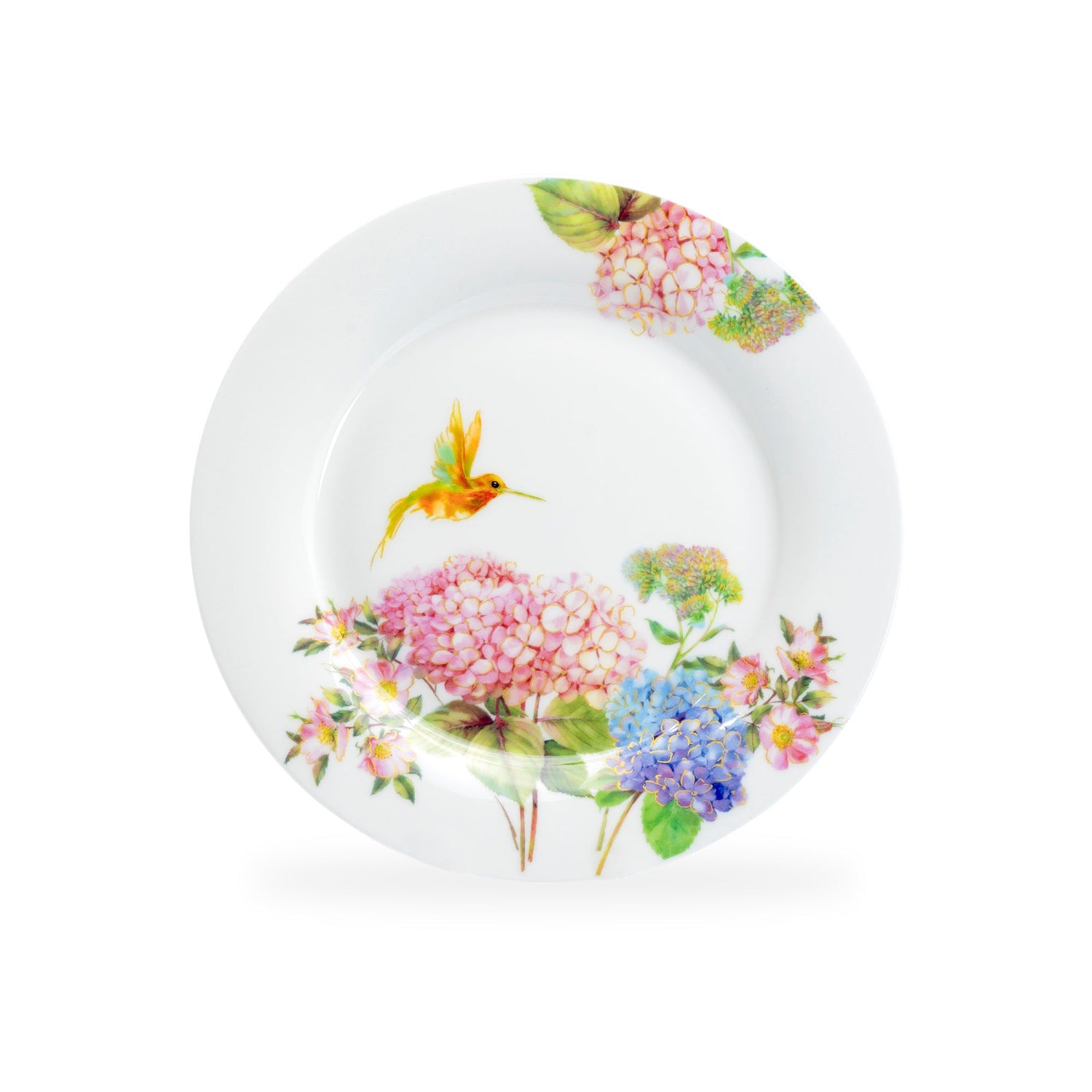 The Hydrangea with Hummingbird collection is a charming ensemble of bone china...