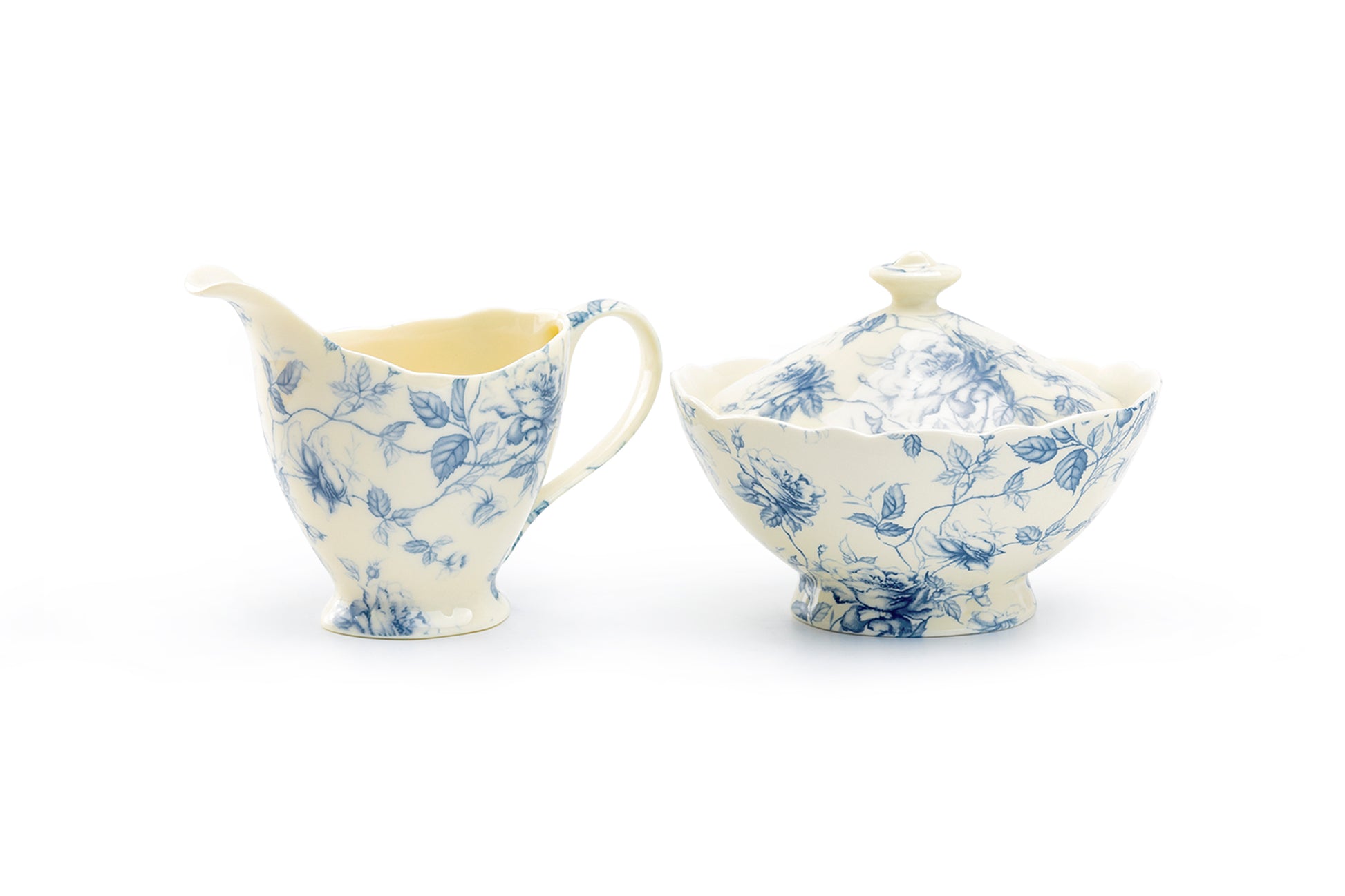 Blue Rose Toile Fine Porcelain Sugar & Creamer Set
