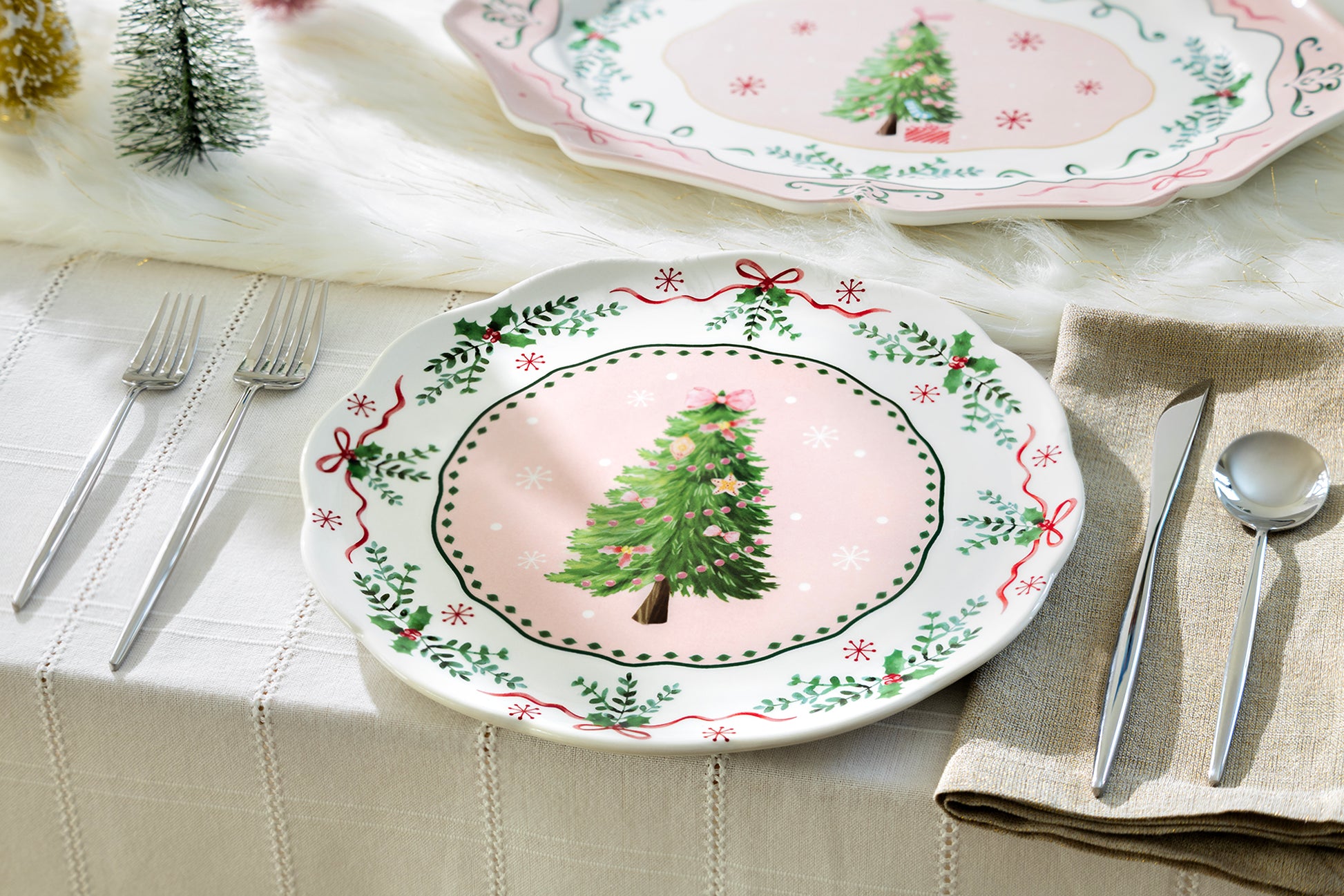 Christmas Tree Pink Dinner Plate