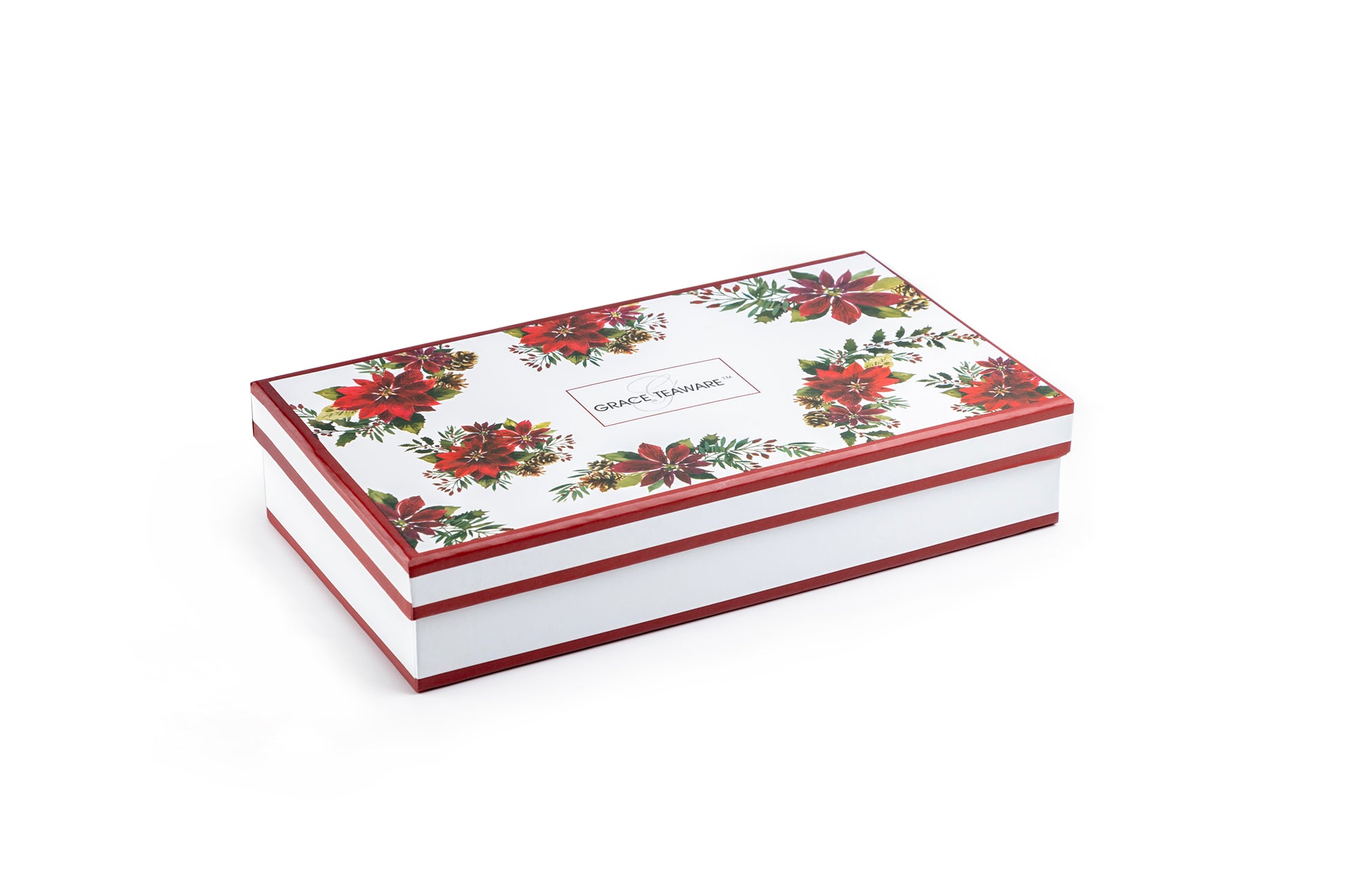 Poinsettia Pine Cone 3oz Demitasse Cups and Saucers with Gift Box