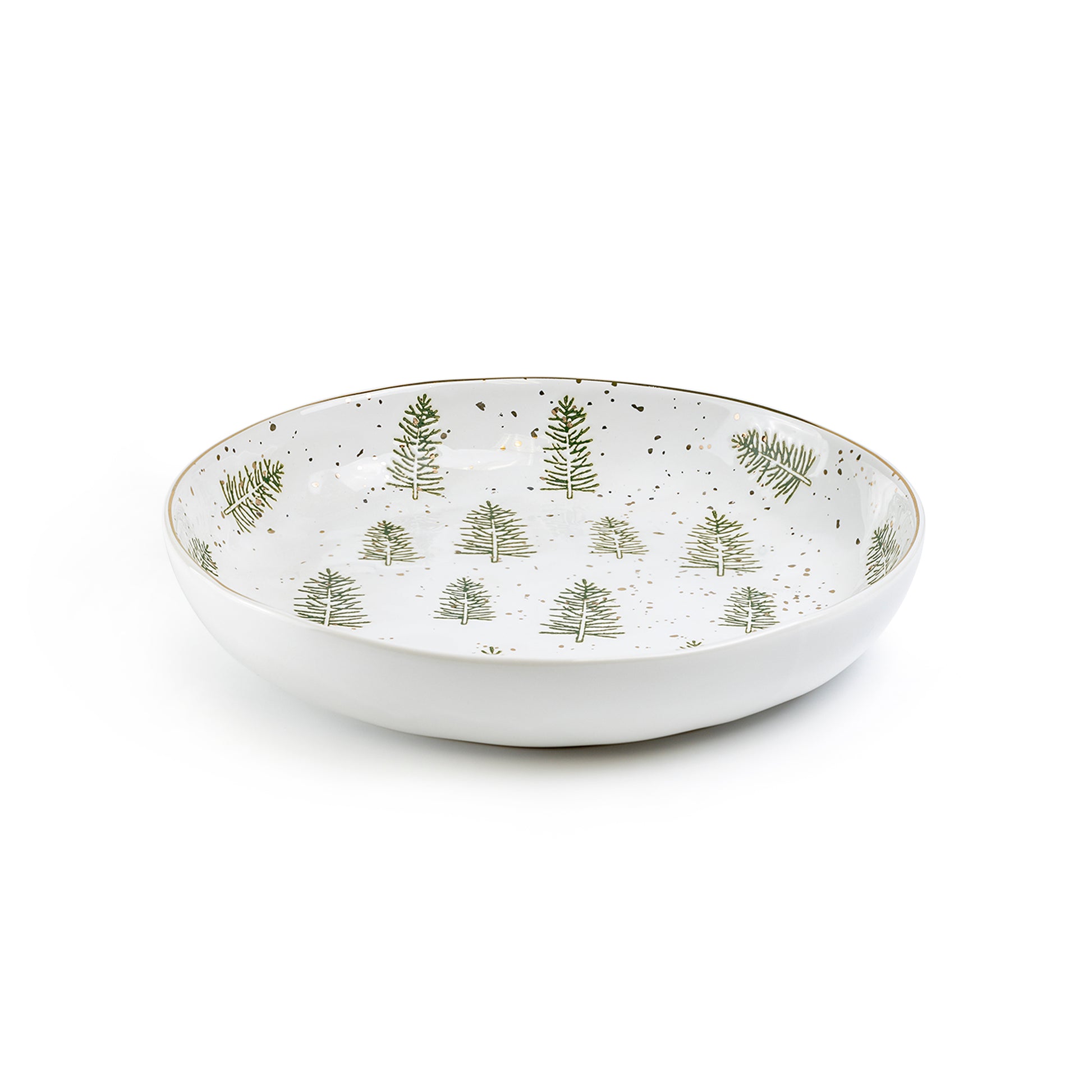 The Snowy Pine Trees Pasta Bowl is a beautifully designed piece that captures the essence of the winter season with its engraved pine trees and delicate gold specks that add a festive sparkle. Perfect for serving pasta, salads, or any hearty dish, this bowl combines functionality with holiday charm.